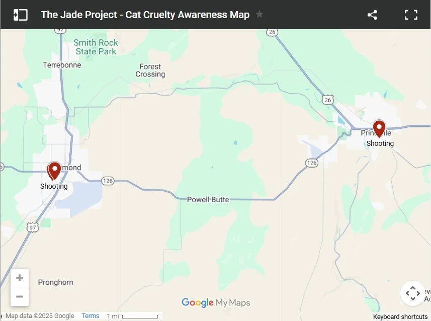 When visitors scroll down our homepage, they’ll find a familiar sight: a clean, easy-to-navigate Google Map, centered on Central Oregon. From afar, the map shows small red markers representing each verified cruelty incident. With just three entries so far, the view feels quiet — but each point carries a story that matters.